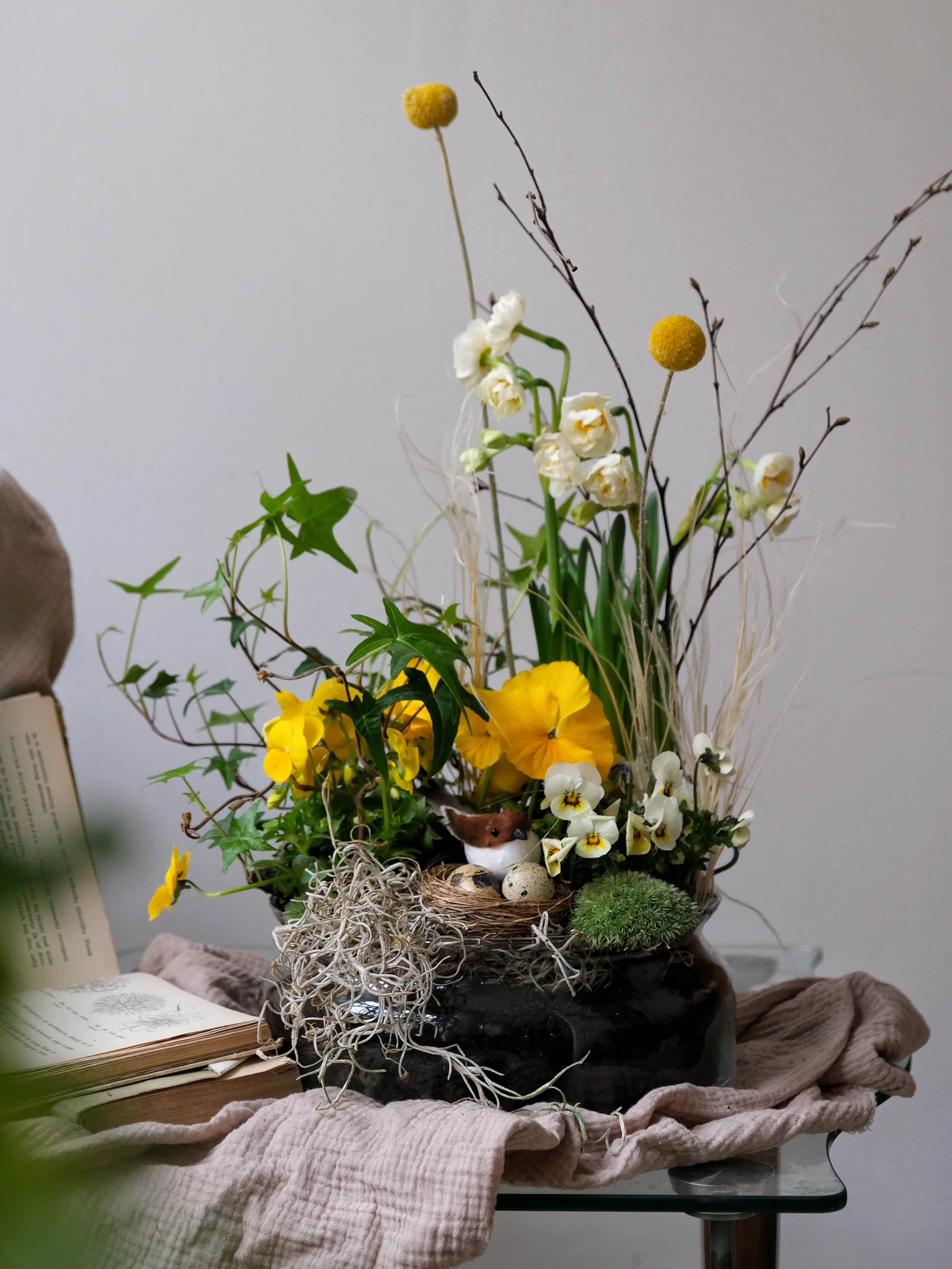 Kompozycję układam ręcznie, od podstaw – dobieram rośliny, ich wysokości, kierunki wzrostu i kolory. Dlatego każda kompozycja jest trochę inna i może się delikatnie różnić od tej na zdjęciu.