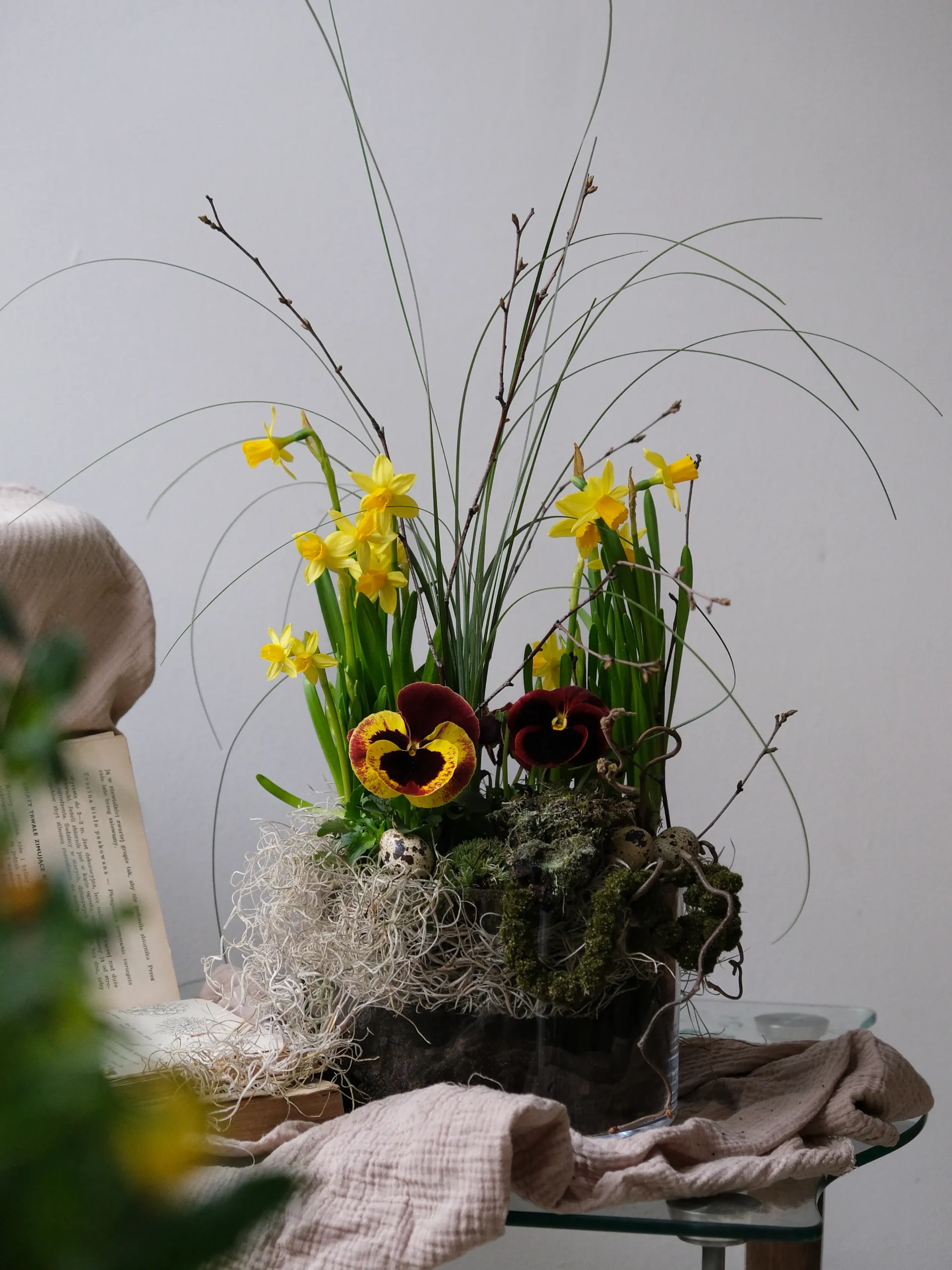 Kompozycję układam ręcznie, od podstaw – dobieram rośliny, ich wysokości, kierunki wzrostu i kolory. Dlatego każda kompozycja jest trochę inna i może się delikatnie różnić od tej na zdjęciu.